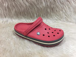 The Crocs Crocband Clog in pepper red and dark grey combines sporty style with the all-day comfort Crocs are known for. Made with lightweight, durable Croslite™ foam, these clogs feature the signature Crocband™ midsole stripe for a bold, athletic touch. Ventilation ports enhance breathability and allow for easy Jibbitz™ charm customization. Perfect for casual wear, beach days, or everyday comfort.