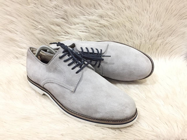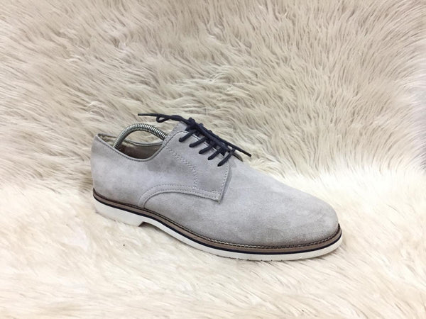 Color: grey suede lace-up dress shoe