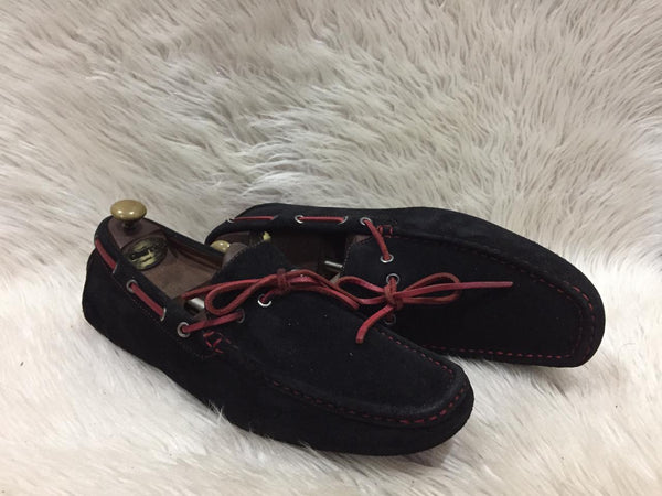 Elevate your everyday style with the John W. Nordstrom Black Suede Moccasin Driver Loafers for Men. Expertly crafted from premium suede, these loafers offer a perfect mix of luxury, comfort, and sophistication. The moc-toe design and rubber driver sole provide flexibility and a refined casual look — ideal for both weekend wear and smart outings.
