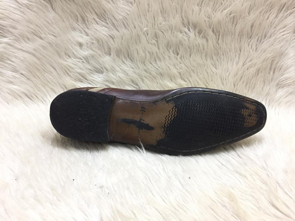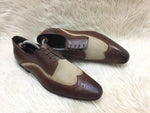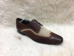 Refined craftsmanship meets modern style in the Oune Oxford Brogue Lace-Up Shoe. Designed with rich brown leather and contrasting beige fabric panels, these shoes bring a sophisticated twist to the classic brogue. The intricate perforated detailing and sleek Oxford silhouette make them ideal for both formal and smart-casual occasions. A comfortable cushioned insole and durable sole ensure all-day wearability with timeless charm.