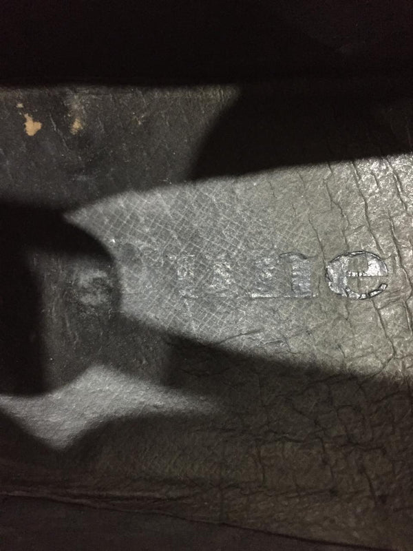 Color: brown leather and beige fabric detailing.