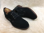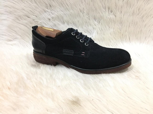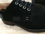 Color: black solid suede lace-up shoe