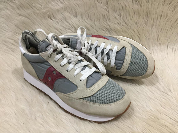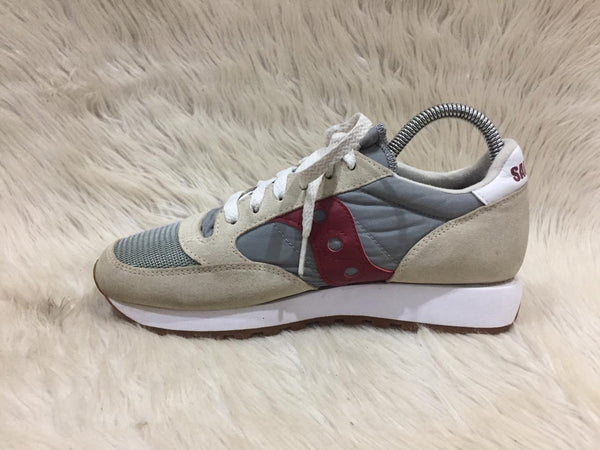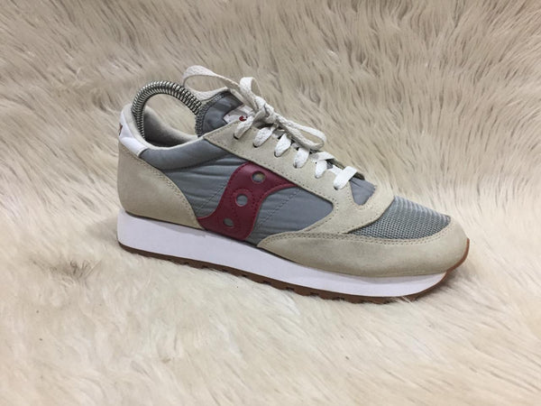 The Saucony Jazz Original Vintage sneaker combines classic 1980s running heritage with modern-day comfort. Featuring a cream, grey, and red colorway, this timeless silhouette offers effortless retro style with a comfortable ride. The nylon and suede upper delivers durability and texture, while the EVA midsole provides lightweight cushioning for all-day wear. Perfect for casual looks or laid-back weekends.